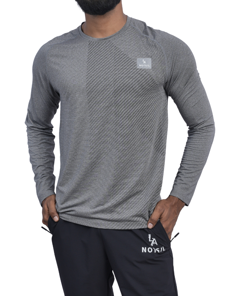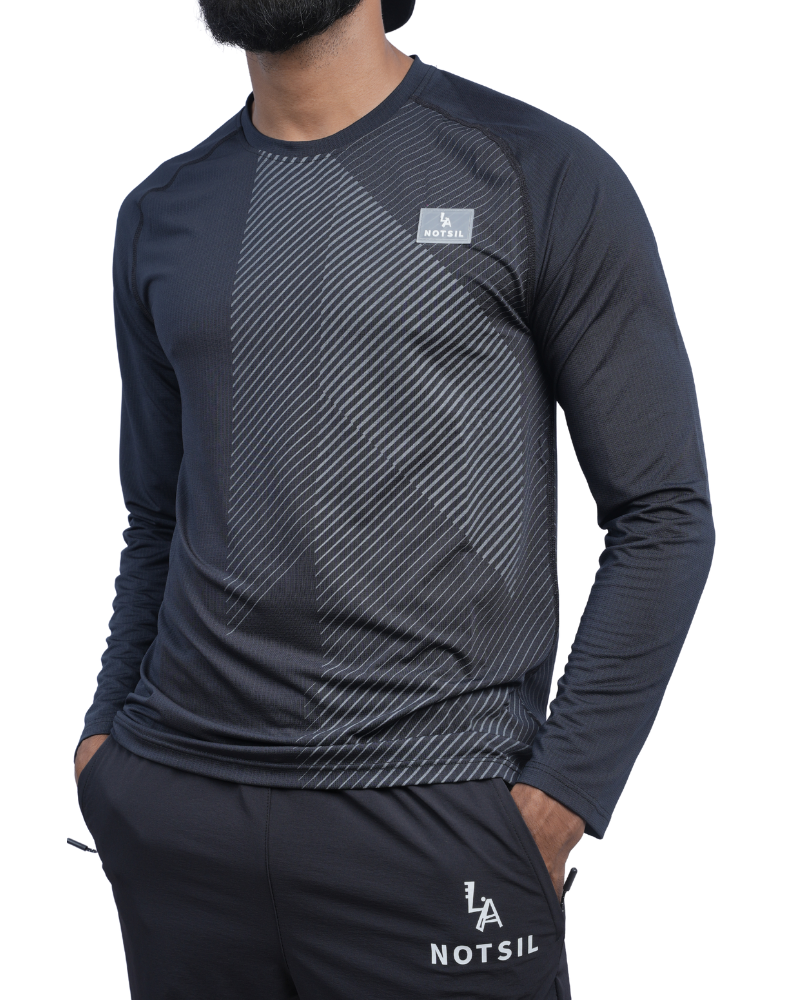 Men’s Crest Long Sleeve T-Shirt, thoughtfully crafted for the modern man who values comfort and sophistication. Made from a premium blend of 90% polyester and 10% spandex, this t-shirt features an eye-catching self-design that sets it apart from ordinary basics. The shoulder fit design ensures a tailored yet relaxed silhouette, making it an ideal choice for both casual outings and more polished events.