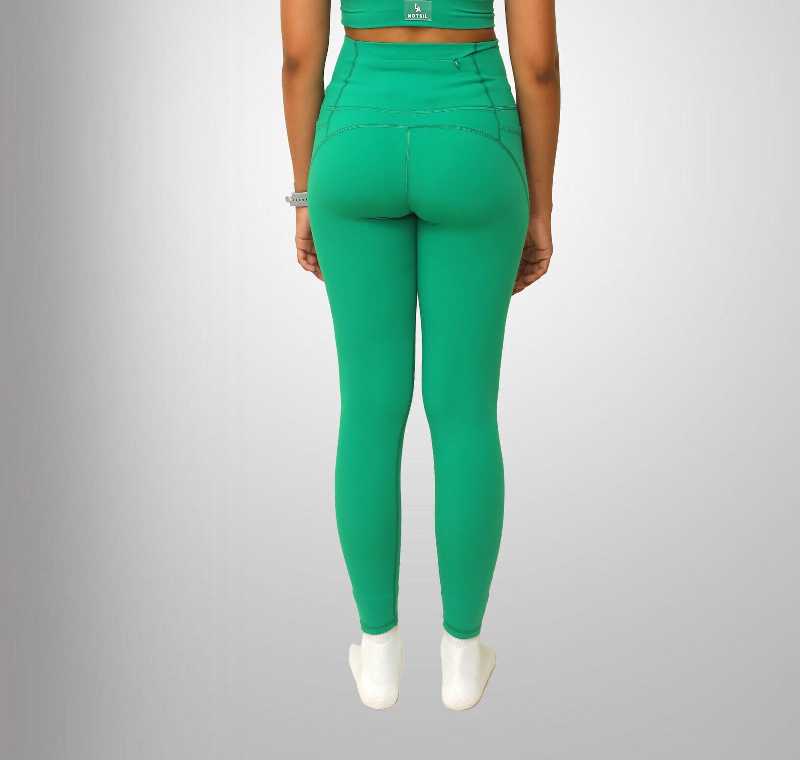 Featuring thoughtfully designed side pockets, these leggings offer a convenient and secure storage solution for your essentials, such as your phone, keys, or cards, allowing you to stay hands-free and focused during your workouts or daily errands. Additionally, a discreet back pocket provides an additional storage option for valuables, offering peace of mind while on the move.